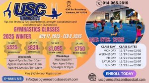Gymnastics Classes in The Bronx & Yonkers, NY USC Gymnastics Class Sessions Current Gymnastics Class Registration Winter 2025 for 10 weeks 11/17/25 thru 02/08/26 Click to Register for Current Gymnastics Classes! Click here for USC Calendar