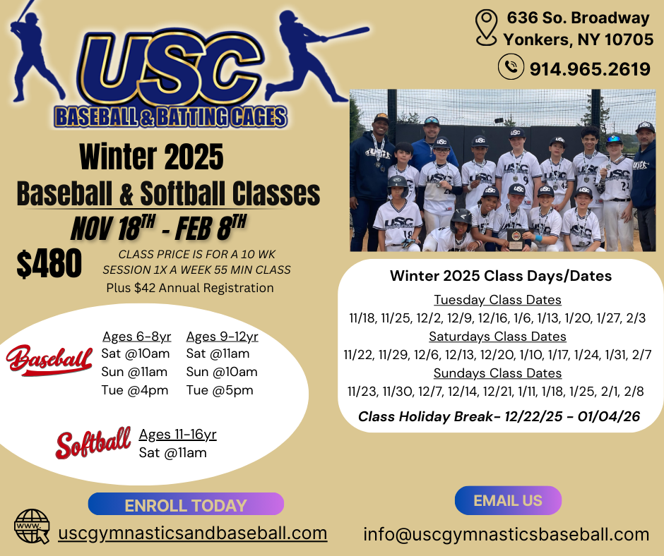 USC Winter Baseball & Softball 55min Class 10wks Nov. 2025 – Feb 2026