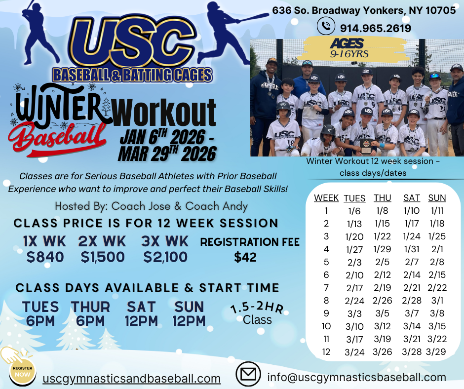 Winter Baseball Workout Begins Jan 6th, 2026! Register Today!